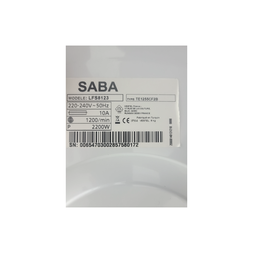 Lave-linge hublot Saba modèle LFS8123, appareil électroménager destiné au lavage du linge.