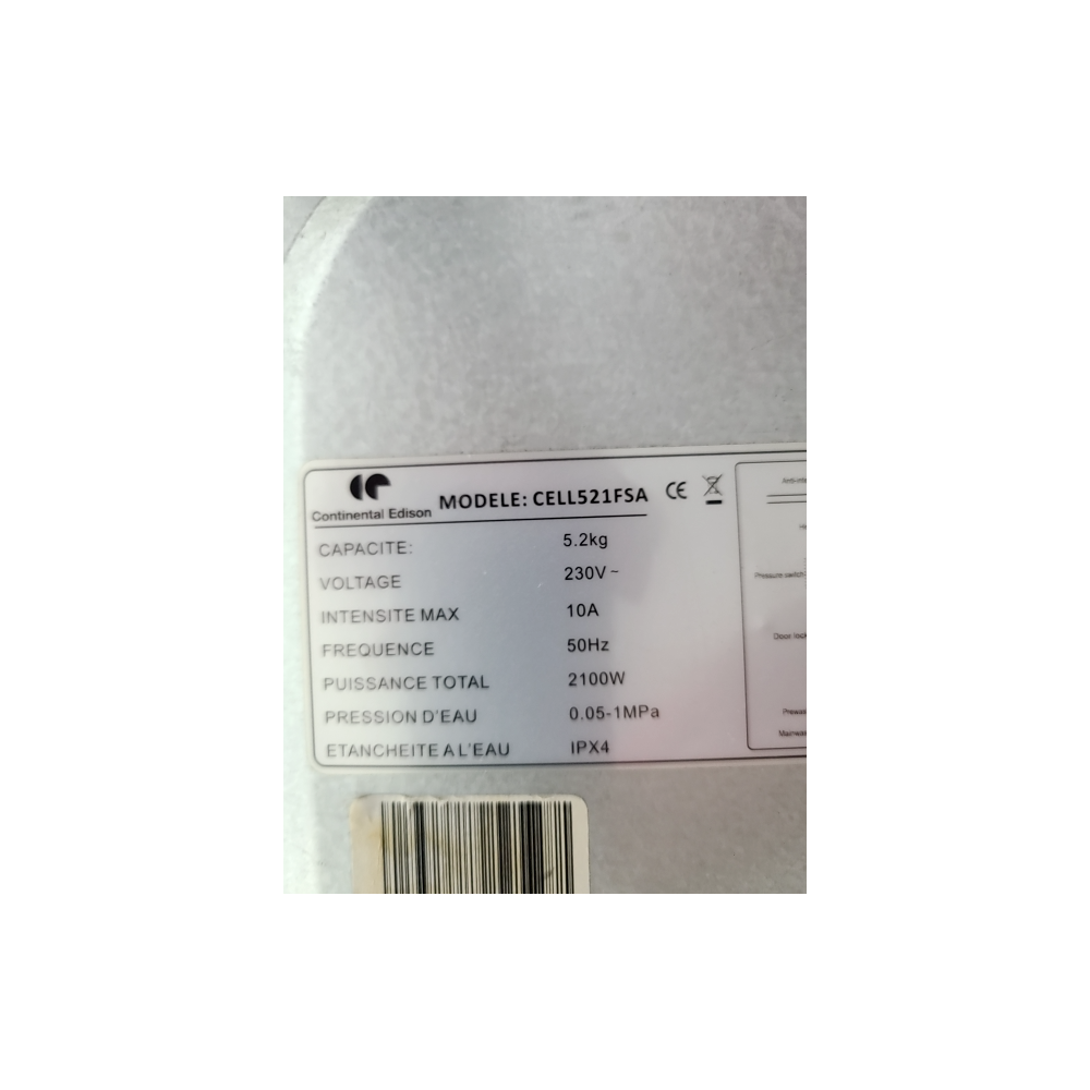 Lave-linge reconditionné, 7kg, classe A, moteur induction, nombreux programmes dont vapeur et...