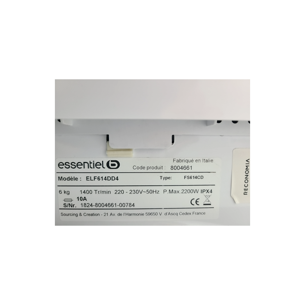Lave-linge hublot Bellavita modèle WMF1006A++WVET, conçu pour un usage domestique avec plusieurs...