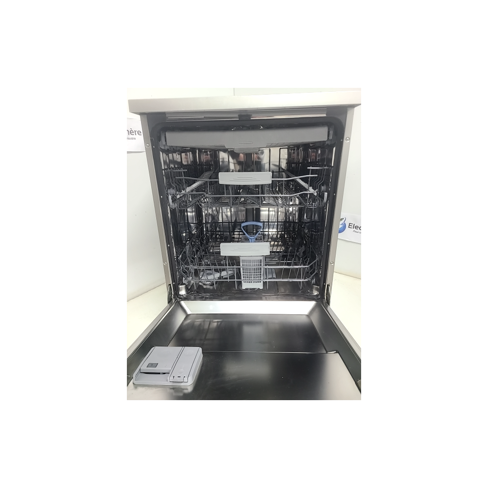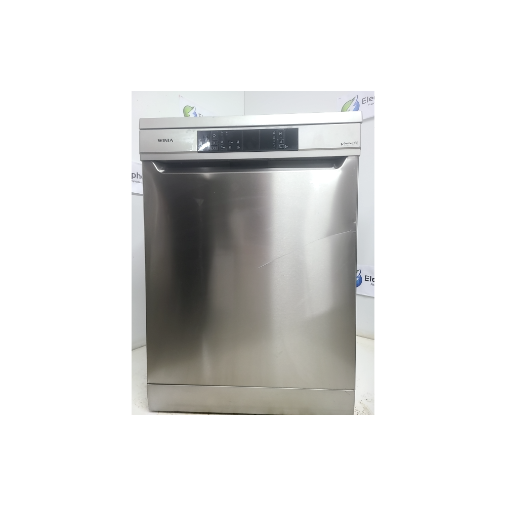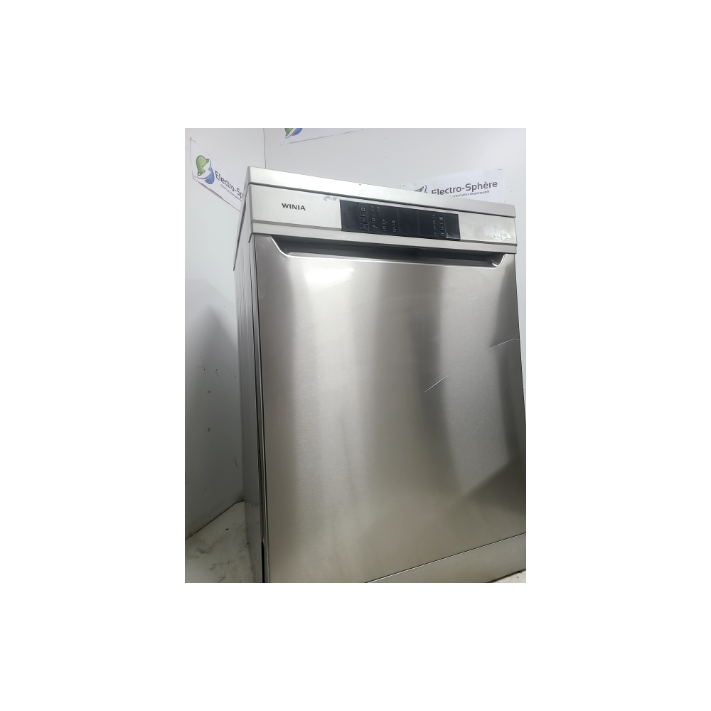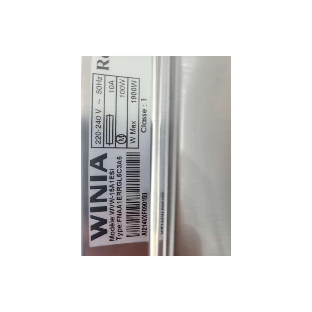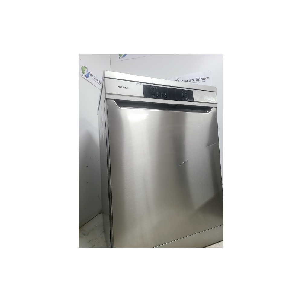 Le lave-vaisselle WINIA WVW-15A1ESI est un appareil pose libre conçu pour une capacité de 15 couverts. Il propose 6 programmes adaptés à différents besoins : Prélavage, Rapide 30 minutes à 40°C, Eco, Super 50 minutes à 65°C, Intensif 65°C et Hygiène 70°C. Il dispose d'un départ différé programmable de 1 à 24 heures, d'une fonction demi-charge et d'un système de séchage Turbo Drying pour une vaisselle parfaitement sèche. Le niveau sonore est de 45 dB, garantissant un fonctionnement silencieux. Ce modèle est classé en énergie E et consomme environ 9 litres d'eau par cycle. Il est équipé d'une sécurité anti-débordement et d'indicateurs LED pour le sel, le liquide de rinçage et la fin de cycle. Le lave-vaisselle est disponible en version reconditionnée en état correct. Le type de pose est libre, facilitant son installation dans diverses configurations de cuisine.