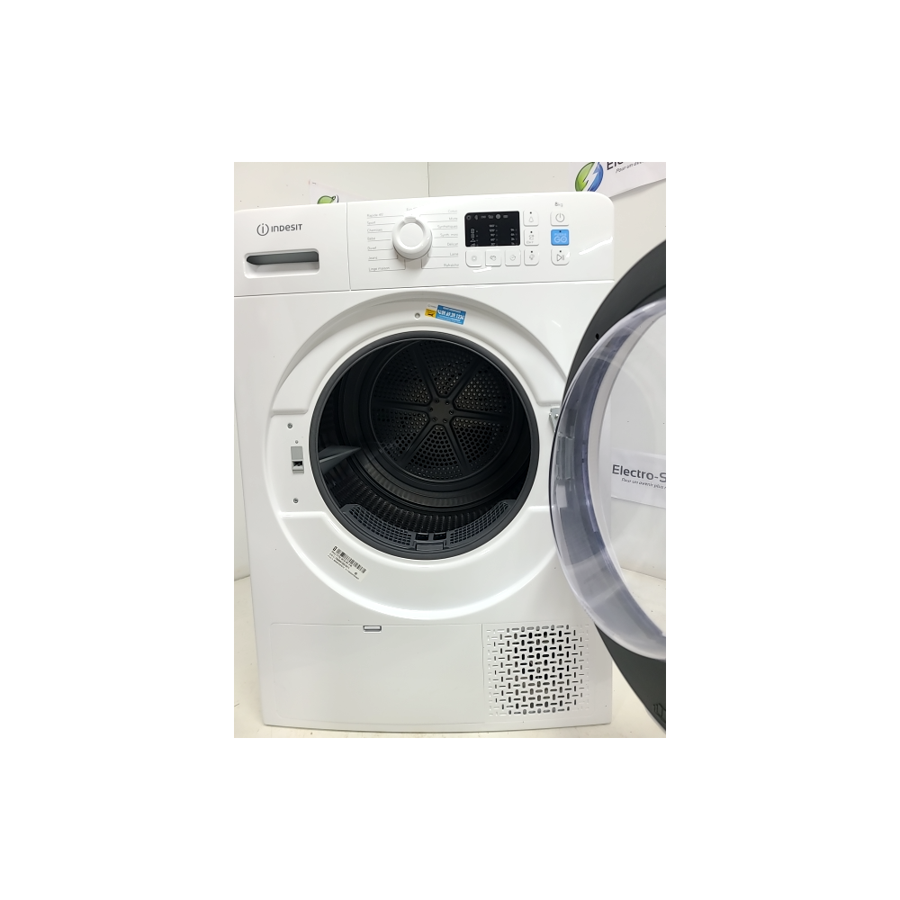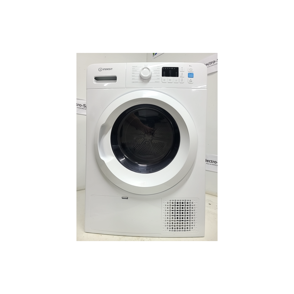 Sèche-linge Indesit YTNM1081FR à pompe à chaleur, capacité 8 kg, classe énergétique F, niveau sonore 67 dB, dimensions compactes, idéal pour un séchage efficace et économique.